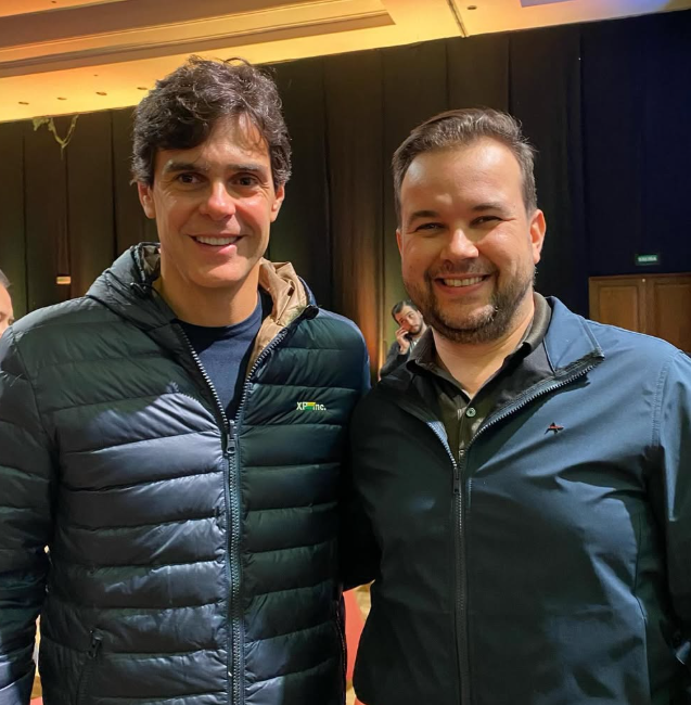 Na foto, à esquerda, Guilherme Benchimol, fundador da XP Inc., uma das maiores instituições financeiras do Brasil, e à direita, André Crosciatti, o Sócio Fundador da Eleita Capital.